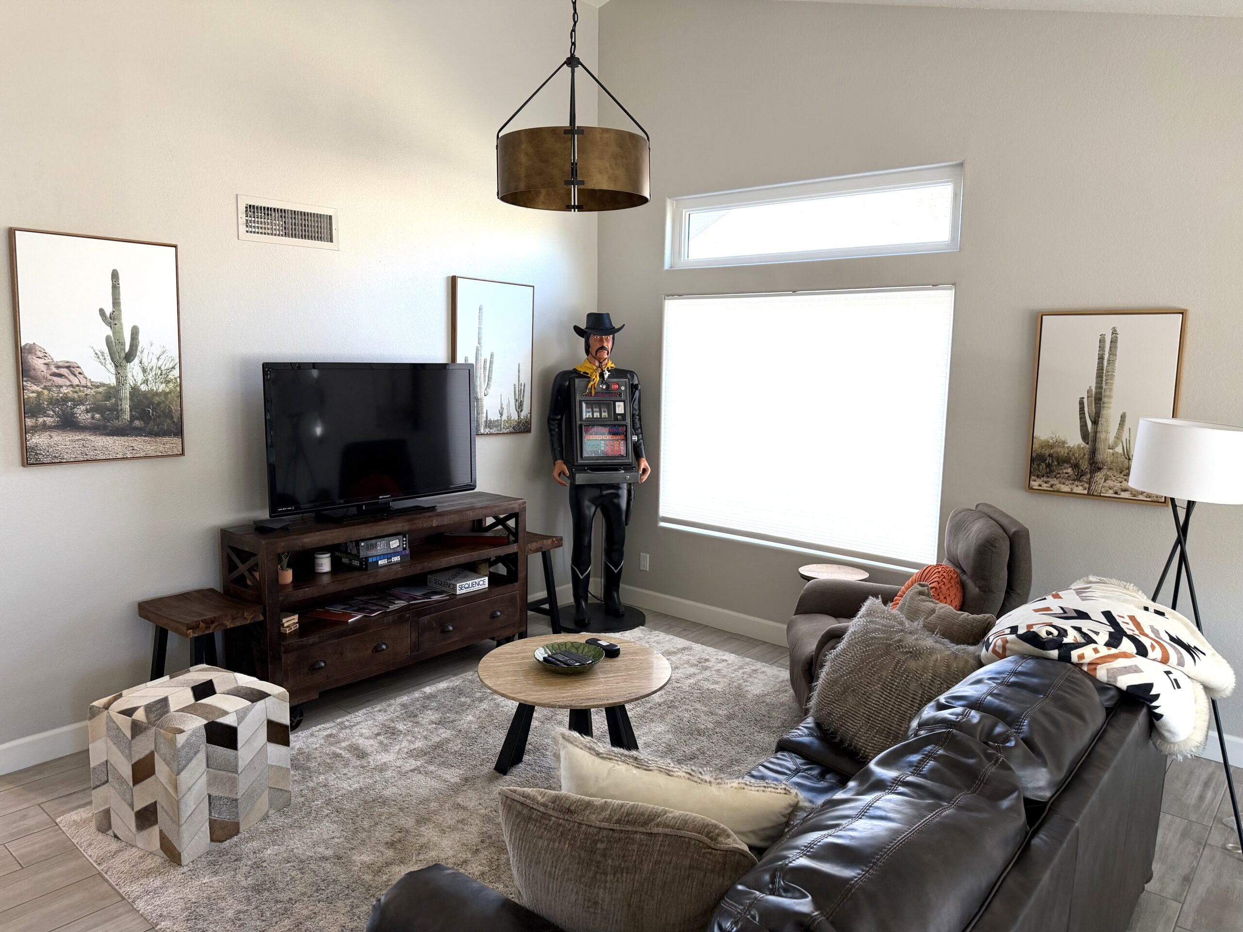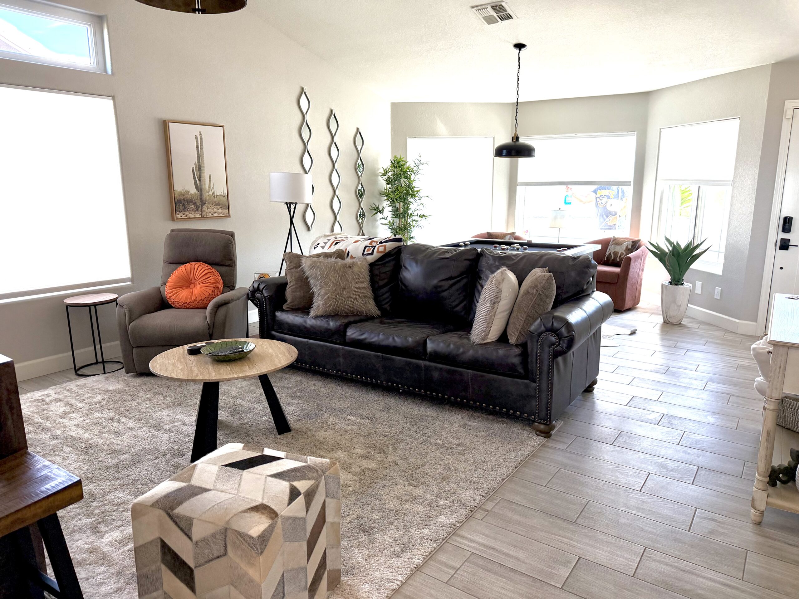 Serene sanctuary filled with natural light. This home has a spectacular pool, hot tub and impressive views of the mountains and wildlife preserve perfect for relaxing, drinking a cup of coffee or sipping a glass of wine, while taking in the Valley. Furnished with 3 Queen beds. Easy access to Scottsdale, Tempe, Spring Training facilities, hiking and biking trails.